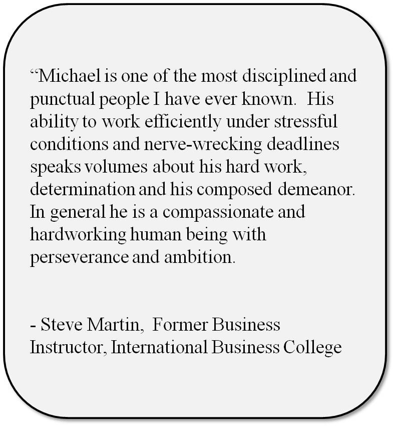 Listed below are selected recommendations from some of the executives and colleagues Michael has worked with throughout his career.